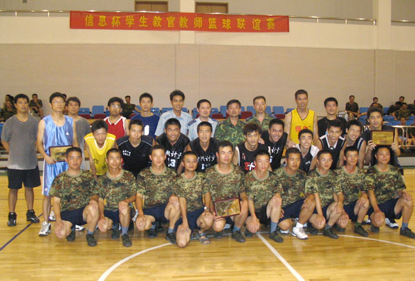 8月24日晚,在校體育館內,信息杯學生教官教師籃球聯誼賽如期舉行,本次活動由信息工程學院承辦,體軍部協辦。部分軍訓領導小組成員、全體軍訓師教官和部分軍訓學生觀看本次精彩的比賽。