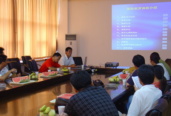 季建成教授、鄭必舜書記代表體軍部向寧波大學體育學院的客人表示了熱烈的歡迎,李亞慰老師就我校開展《國防教育》課的課程建設狀況和教學任務的具體實施等情況進行了全面介紹,主要內容包括《國防教育》課程在我校的開設、課程大綱日歷等文件的制定、課程性質、課程的學分學時分配、課程內容的確立、課程試題庫建設、課程的考試形式與組織以及相關科研活動的開展等情況。