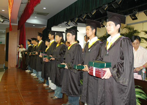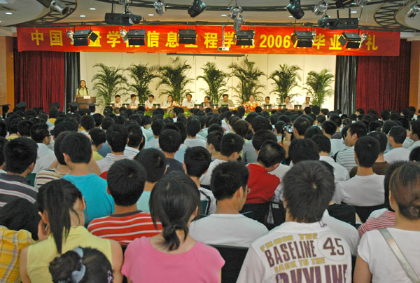 6月21日下午2點,信息工程學院在啟明活動中心隆重舉行2006屆畢業典禮。校長林建忠應邀出席了典禮。信息工程學院黨政領導、系主任、畢業班班主任、輔導員和全體畢業生參加了典禮。畢業典禮由信息工程學院黨總支副書記孫彩霞主持。   畢業典禮在莊嚴的國歌聲中拉開了帷幕。林建忠校長在典禮上致詞。一首《再別康橋》,林校長將大家的思緒拉回了當年初來量院的時光,四年前,大家從全國1700多所高校中選擇了量院,就注定與量院結下了不解之緣,希望大家珍惜這緣分,有空常回母校看看。在畢業生即將離開母校,走向社會之際,他代表學校提出了五點希望:一是要樹立正確的世界觀、人生觀;二是要實現自身價值,以此回報社會;三是今后無論遇到什么困難,要仔細分析,不要輕言放棄;四是要把握好自己的定位,不要越位;五是要耐得住寂寞,要學會淡定從容。最后,一句豐子愷的“夜涼如水,請珍重加衣”表達了林校長對畢業生的無盡的關懷和牽掛。   信息工程學院院長金尚忠代表分院向學業有成,即將告別母校、踏上新的人生征途的796名畢業生表示最熱烈的祝賀!向辛勤工作、精心育人的分院全體教職工表示衷心的感謝!他向畢業生提出兩點希望:一是終身學習,迎接挑戰;二是錘煉品格,追求卓越。   信息工程學院副院長金寧在典禮上宣讀了《信息工程學院關于表彰2006屆省級、校級優秀畢業生的通知》,并宣布了省級優秀畢業生名單。出席的領導為畢業生代表頒發了學位證書和畢業證書,為省級和校級優秀畢業生代表頒發了榮譽證書。   信息工程學院汪志勤在畢業典禮上代表教師發言,表達了全院教師對廣大畢業生的衷心祝愿和殷切期盼。02光信1班李蓮萍同學代表畢業生發言,祝愿學校的明天更輝煌,學院的明天更燦爛,同學們的明天更美好。02計算機1班李旦同學帶領全體畢業生許下了“銘記老師教誨,履行時代使命,以國家利益為重,崇尚科學,追求真理,團結、嚴謹、勤奮、進取,做有益于人民的人,為母校爭光,為祖國昌盛、人類進步奮斗終身”的莊嚴的誓言。   畢業典禮結束后,信息工程學院邀請了我校95屆優秀校友代表、浙江省十佳民警、上城區治安大隊隊長蔣正波為在座的畢業生傳經送寶。他結合自己工作十余年的經歷,講述了自己人生中的五個“第一次”,提醒師弟師妹們今后一要勤奮、能吃苦;二是做事要從細微處去觀察;三是要鍛煉身體;四是要有團隊合作精神;五是要愛崗敬業。