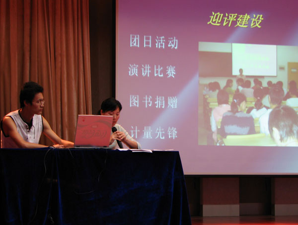 5月31日晚,我校團(tuán)委在方圓樓多功能廳組織舉辦了2005年度“五?四”紅旗分團(tuán)委公開展示評(píng)比活動(dòng)。來自校團(tuán)委、各二級(jí)學(xué)院分團(tuán)委的老師和50名各二級(jí)學(xué)院學(xué)生代表作為評(píng)委參加了評(píng)比,團(tuán)學(xué)干部培訓(xùn)班的學(xué)員觀摩的展示。   這是我校第一次通過公開展示的方式由學(xué)生代表與團(tuán)委委員共同來評(píng)價(jià)二級(jí)學(xué)院共青團(tuán)的工作,根據(jù)量團(tuán)委〔2006〕10號(hào)文件《關(guān)于開展團(tuán)籍注冊(cè)、團(tuán)內(nèi)先進(jìn)評(píng)比和主題團(tuán)日活動(dòng)評(píng)比的通知》要求,有7個(gè)分團(tuán)委(團(tuán)總支)提出了申報(bào),由參評(píng)的二級(jí)學(xué)院分團(tuán)委(團(tuán)總支)書記從分團(tuán)委工作班子建設(shè)、思想建設(shè)、主題活動(dòng)、支部建設(shè)、社會(huì)實(shí)踐、學(xué)生參與課外科技活動(dòng)等方面進(jìn)行總結(jié)和展示。由師生代表一起投票進(jìn)行評(píng)比,參加評(píng)比的老師代表18名,學(xué)生代表49名,老師代表和學(xué)生代表的票數(shù)在投票結(jié)果中各占50%。經(jīng)過展評(píng),最終機(jī)電工程學(xué)院分團(tuán)委和計(jì)量技術(shù)工程學(xué)院分團(tuán)委以高票被評(píng)為2005年度“五?四”紅旗分團(tuán)委。   通過這次展示,更多的同學(xué)對(duì)各二級(jí)學(xué)院分團(tuán)委(團(tuán)總支)的工作情況有了比較全面的了解,同時(shí)各分團(tuán)委(團(tuán)總支)也通過展示交流了工作,相互學(xué)習(xí),相互啟發(fā),相互借鑒一些先進(jìn)的經(jīng)驗(yàn),為下一步全面提升我校的團(tuán)學(xué)工作水平,在迎評(píng)創(chuàng)優(yōu)工作中更好地發(fā)揮各級(jí)團(tuán)組織的力量作了準(zhǔn)備。