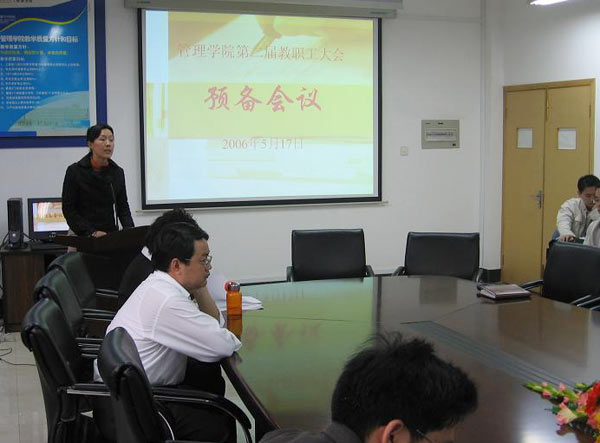 2006年5月17日下午1點,管理學院在格致南307會議室召開了管理學院第二屆教職工大會預備會議。會議由教職工大會秘書長劉洋老師主持。會上,總支書記范慶瑜老師首先介紹了學校教代會的總體安排和學院教職工大會的會議安排;總結了上一屆分工會成員名單和工作開展情況,充分肯定了他們取得的成績和為教職工做出的貢獻。然后劉洋老師向全體教職工宣讀并通過了“管理學院第二屆教職工大會選舉辦法”,“校第六屆教職工代表大會暨第八屆工會會員代表大會代表侯選人名單”,“管理學院第二屆分工會委員侯選人名單”,“管理學院第二屆教職工大會監計票工作人員名單”。