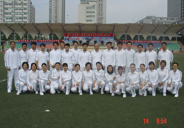 由浙江省教育廳、浙江省教育工會舉辦的迎奧運健身啟動儀式于5月14日上午在浙江工業(yè)大學(xué)及全省七個分會場同時進(jìn)行。省教育廳鮑學(xué)軍副廳長在大會上講話,要求全省教職工以積極的姿態(tài)迎接奧運會,廣泛深入開展各項體育健身活動,以健康的身體為教育事業(yè)貢獻(xiàn)自己的力量。   開幕式后由23所高校和部分中小學(xué)校近1000多位教師,在“每天鍛煉一小時,健康工作五十年,幸福生活一輩子”的大紅橫幅前表演了大眾廣播操,隨后開展了六人集體跳繩、踢毽子及飛鏢比賽,我校參賽教職工在賽前精心準(zhǔn)備,認(rèn)真訓(xùn)練,賽場上齊心協(xié)力,互相鼓勵,勇奪飛鏢比賽的第四名和踢毽子第十名。