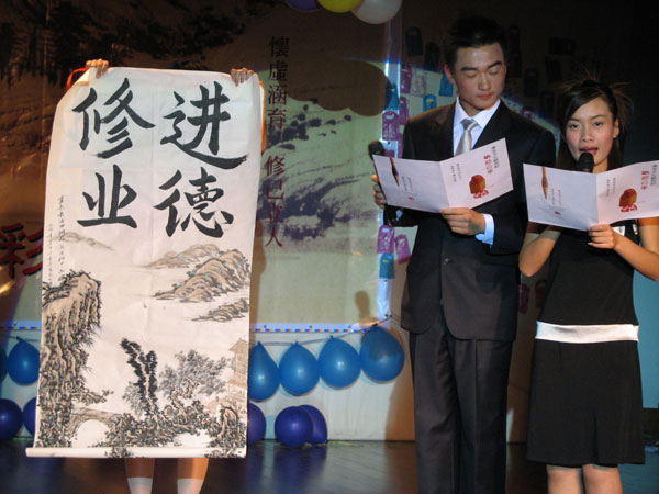 4月20日晚6:30,人文社科學院首屆廣告文化藝術節在啟明活動中心隆重開幕。校黨委副書記于永明、校黨委宣傳部部長畢曉光、校團委書記巢岺、人文學院黨支書記張新建、外國語學院黨總支書記李元江、現代科技學院黨總支副書記陳剛,人文學院廣告系、公共事務系、中文系、兩課所等領導、教師和社會各界嘉賓以及各學院分團委書記和下沙地區各高校的學生會代表出席了此次晚會。   由校吉他協會的一曲《不再猶豫》拉開了此次晚會的序幕,緊接著的一系列歌舞、話劇、廣告知識競賽等精彩紛呈的節目和互動游戲紛紛上演,使現場氣氛一次次達到高潮,得到了領導們的好評。   晚會上,主持人還隆重推出了人文學院的院訓和人文精神,此院訓面向全院廣泛的征集,經過中文系教授的評審與篩選,再由領導研究、召開全院學生的班會投票而確定。它結合了胡錦濤總書記關于社會主義榮辱觀的講話精神,充分體現出人文學院的育人理念和辦院宗旨,號召人文學子以此共勉為我校迎評促建貢獻力量。   在開幕式的前一天,由人文學院主辦、學生工作辦公室、廣告系承辦的此次藝術節已開始了大規模的宣傳活動。以人文學院學生會為主體的廣告節籌委會成員們身著統一的宣傳衫出現在校園的各個角落張貼海報和懸掛橫幅。開幕式當天中午,學院也舉行了盛大的簽名儀式,標志著廣告文化藝術節的正式啟動。   此次廣告文化藝術節將邀請中國美院上海設計分院的教授以及廣告業內人士、留美專家前來講學指導。還將推出一系列精彩的活動,如廣告人拔河比賽、廣告形象大使選拔賽、廣告攝影展、書畫展、平面設計大賽等等。廣告文化藝術節是人文學院首次舉辦有專業特色的大型活動。學院將不斷搭建平臺,使第一課堂的專業教育和第二課堂的綜合素質教育更好地結合,為校園文化建設和迎評促建貢獻力量!