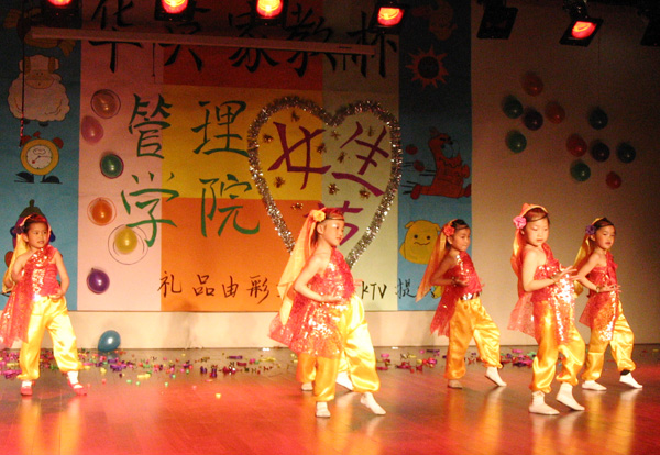 主持人宣布女生節正式開幕后,一個個精彩紛呈的表演陸續登場。校形象隊走秀、校十佳歌手的獻藝、子午話劇社的青春話劇、器樂表演、街舞都博得了場下的陣陣掌聲。其中,景圓幼兒園小朋友的印度舞和搏擊操,更是得到了在場觀眾的聲聲喝彩。