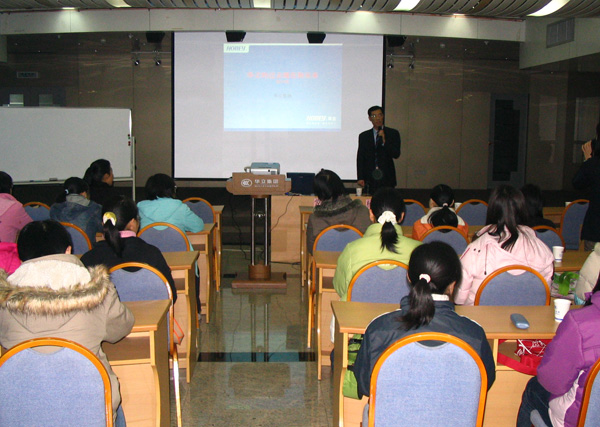 28日當天,管理學院總支書記范慶瑜,輔導員和40名試點班同學先到了華立集團總部進行參觀。華立集團董事局常軍、人事部經理楊振華對我們進行了接待。首先華立集團董事局常軍給我們做了華立的過去、現在和將來的主題報告;然后人事部經理楊振華給我們詳細介紹了華立的人事管理制度。