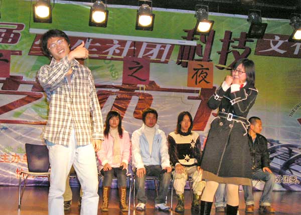 2005年12月4日晚啟明活動(dòng)中心多功能廳又迎來了一次盛會(huì),由五星級(jí)社團(tuán)子午話劇社傾力打造的“子午之夜”話劇專場(chǎng)在眾人的期待中拉開了帷幕。校團(tuán)委書記巢老師、副書記楊老師應(yīng)邀來觀看演出。   造型別致的“小丑”主持人拉開了整場(chǎng)晚會(huì)的序幕,唯美的悲情故事《女人花》詮釋了一段可歌可泣的愛情傳奇,精湛的演技贏得臺(tái)下的掌聲,動(dòng)情之處還有不少觀眾為之哽咽。由子午話劇社社長(zhǎng)徐婉君擔(dān)任主角的《城堡憶事》,演繹了“公主”與“騎士”童話般的愛情;《戀愛培訓(xùn)班》則用詼諧幽默的形式揭示了現(xiàn)代戀愛的狀態(tài),笑過之后耐人尋味;而《雷雨》節(jié)選做為整場(chǎng)晚會(huì)的“壓軸戲”讓每一位觀眾一飽眼福,雖非專業(yè)演員,但子午話劇社成員在演出時(shí)顯示了深厚的功底,將人物塑造得鮮活生動(dòng)、內(nèi)涵豐富,讓喜歡話劇的觀眾不虛此行。   在掌聲中,我們看到了“子午星光燦爛的夜晚”,一曲由全體子午話劇社成員帶來的《我們這里還有魚》將整場(chǎng)晚會(huì)推向高潮,精彩的演出為本屆學(xué)生社團(tuán)科技文化藝術(shù)節(jié)增添了一抹亮色。   子午話劇社(浙江省優(yōu)秀社團(tuán))以“子午為憑,經(jīng)緯為證,我們一直在努力”為宣傳口號(hào),為喜愛表演的同學(xué)提供了廣闊的舞臺(tái),氛圍活躍、自由。其中《非常辯論》、《白樺林》等話劇在校內(nèi)引起不小的轟動(dòng),并且連續(xù)七年承辦話劇小品專場(chǎng)演出,他們排練的《糧食》、《非常辯論》、《燈》等劇目都曾在浙江省大學(xué)生話劇比賽中獲得過較好的名次。風(fēng)風(fēng)雨雨,子午話劇社又長(zhǎng)大了一歲,在過去的日子里,有過失落,有過抱怨,但從來沒有后悔,無論多么辛苦,都只為把最好的演出,獻(xiàn)給每一個(gè)關(guān)心和愛護(hù)子午話劇社的人!