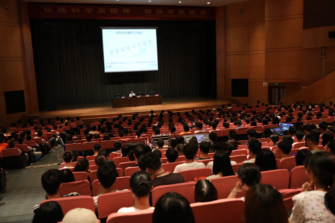 朱位秋院士引用商鞅“立木為信”、周幽王“烽火戲諸侯”兩個典故,結(jié)合自身的學(xué)術(shù)經(jīng)歷,強(qiáng)調(diào)“科研有道,道在誠信”,“遵守學(xué)術(shù)道德規(guī)范”是研究生走向科學(xué)殿堂的第一課;朱院士細(xì)闡述了學(xué)術(shù)道德規(guī)范的含義和基本要求,指出近年來從國家到高校都日益重視學(xué)術(shù)道德,制定了相關(guān)規(guī)章制度,明確“偽造與篡改”、“剽竊或抄襲”、“虛假同行評議”、“一稿多投或署名不當(dāng)”等科學(xué)研究中不能觸碰的學(xué)術(shù)道德“雷區(qū)”,告誡同學(xué)們牢記學(xué)術(shù)道德底線。最后,朱院士從“實驗”和“論文”兩個方面強(qiáng)調(diào)規(guī)范實驗操作,正確規(guī)范論文選題、撰寫和發(fā)表學(xué)述論文。