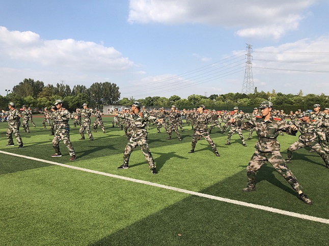 “匕首操”是我校軍訓的一大特色,由體軍部老師和軍訓教官共同創編完成,分為兩段,由“馬步平刺”、“左右彈踢”、“翻身下壓”等17個動作構成,技法以“刺、撩、掛、劈、揮”等匕首的實戰技法組成,動作精練,節奏分明,宛如行云流水,易學易懂。在軍訓常規訓練中加入匕首操的部分,不僅豐富了軍訓內容,還能增強同學們身體的靈活性和協調性,培養勇敢頑強的戰斗作風和尚武精神,是我校新生軍訓工作優秀經驗不斷凝練的結果。