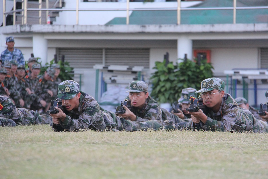 烈日之下,教官和學子訓練熱情不減,努力克服炎熱天氣帶來的影響,嚴摳匍匐前進、舉槍瞄準、防化演練等每一個單兵訓練動作細節,領會每一個動作要領,充分發揚不怕苦、不怕累的精神,按綱、按質、按量完成了訓練內容。