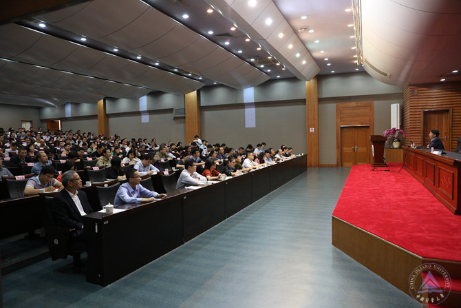 10月14日下午,清華大學副校長、國家自然科學一等獎獲得者薛其坤院士應邀蒞校,在聞廳二樓報告廳做了題為《新時代科技創新和高等教育發展的思考》的精彩報告。校領導、全體中層干部、高級職稱人員、教工黨支部書記代表、新進教師270余人聽取了報告。