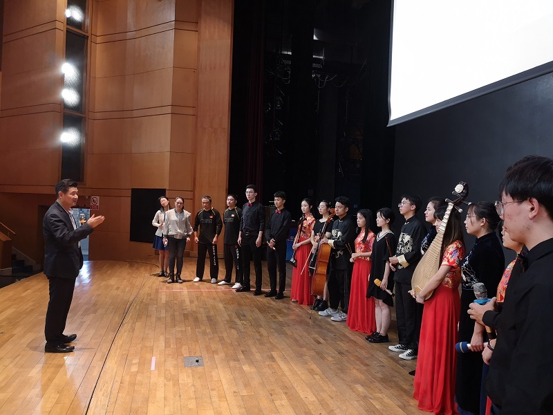 10月18日下午,校長宋明順在國際處、團委、人文與外語學院、體軍部負責人陪同下,看望慰問了參加布拉格金融管理大學孔子學院開學文化演出的備演師生。