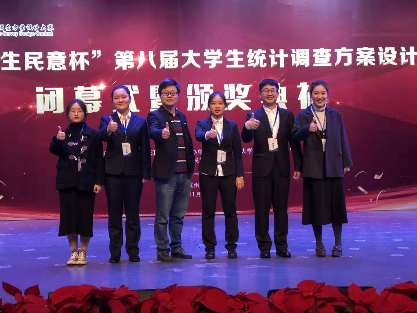 11月15—16日,浙江省“民生民意”杯第八屆大學生統計調查方案設計競賽在浙江財經大學舉行,全省77所學校(含獨立學院)的591個作品報名參賽。經過雙向匿名網評,共138個作品入圍現場答辯。我院最終共獲得一等獎1項,三等獎4項。