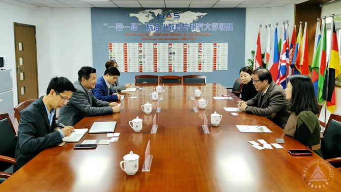 為了加強和推動“一帶一路”標準化教育與研究大學聯盟成員單位間的合作與交流,2019年11月22日上午,韓國中央大學韓國中央大學融合·復合標準政策系負責人李甬奎(Yong-kyu Lee)教授等一行三人應邀來校開展合作與交流。校長宋明順會見了韓國中央大學代表團一行,并就兩校相關學院在“一帶一路”標準化教育與研究大學聯盟合作框架下建立新的校際合作表示歡迎和祝賀。校國際處、經管學院和聯盟秘書處相關人員參加了會議。