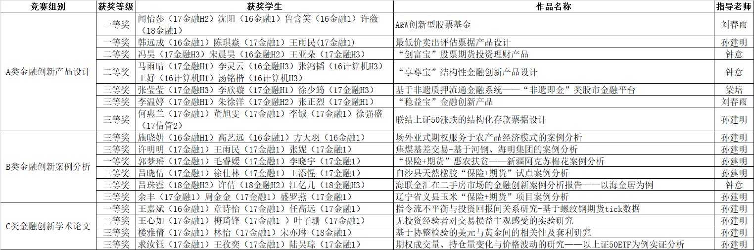 據悉,今年共有39所高校378件作品,近1900名學生參賽。本次大賽分設三類選題,其中包括A類·金融創新產品設計,要求學生將金融需求與設計者的意圖轉化成為一種具體的金融產品或工具。產品設計過程需具有可行性,應全面確定整個產品的策略、結構和功能。B類·金融創新案例分析,學生通過運用金融理論知識對金融事件進行分析并解決問題的一種作品寫作形式。C類·金融創新學術論文,要求對金融領域中的理論和現實問題進行研究后表述研究成果的理論文章。