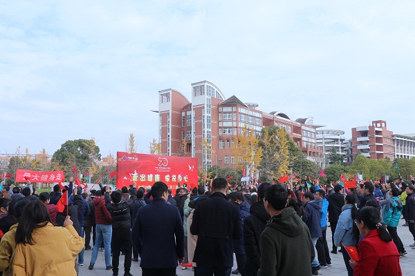 守初心,卌壹春秋無畏風雨兼程,擔使命,強健體魄思量國計民生。12月6日,為慶祝新中國成立70周年,營造我校良好的校園文化氛圍,校工會舉行2019年教職工“走出健康 愉悅身心”健身走活動,學校領導班子成員和近800名教職工一起以健身走的形式慶祝新中國成立70周年取得的偉大成就。