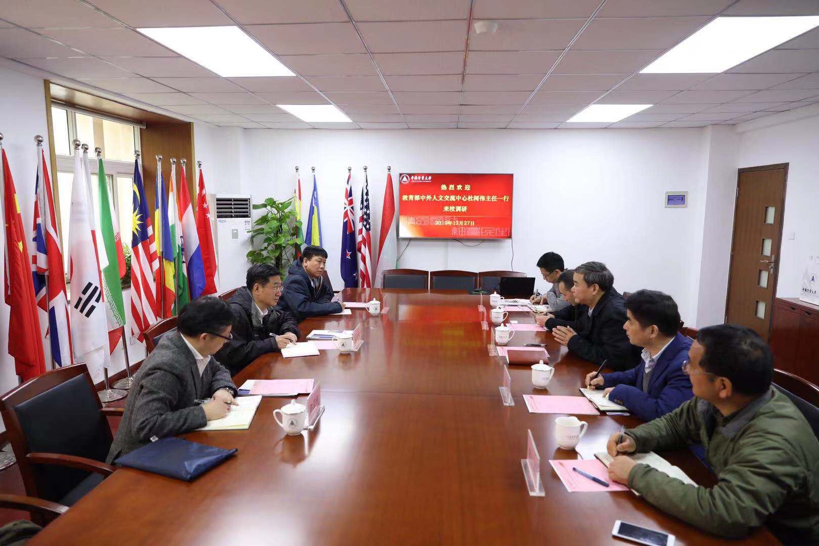 12月27日,教育部中外人文交流中心杜柯偉主任、辦公室張學仁主任、機制二處陳滔偉處長來我校調研,校黨委副書記肖剛熱情會見了客人,國際交流與合作處、國際教育學院、生命科學學院、“一帶一路”標準化教育與研究大學聯盟秘書處主任、國際標準化人才培訓基地負責人參加了會談。