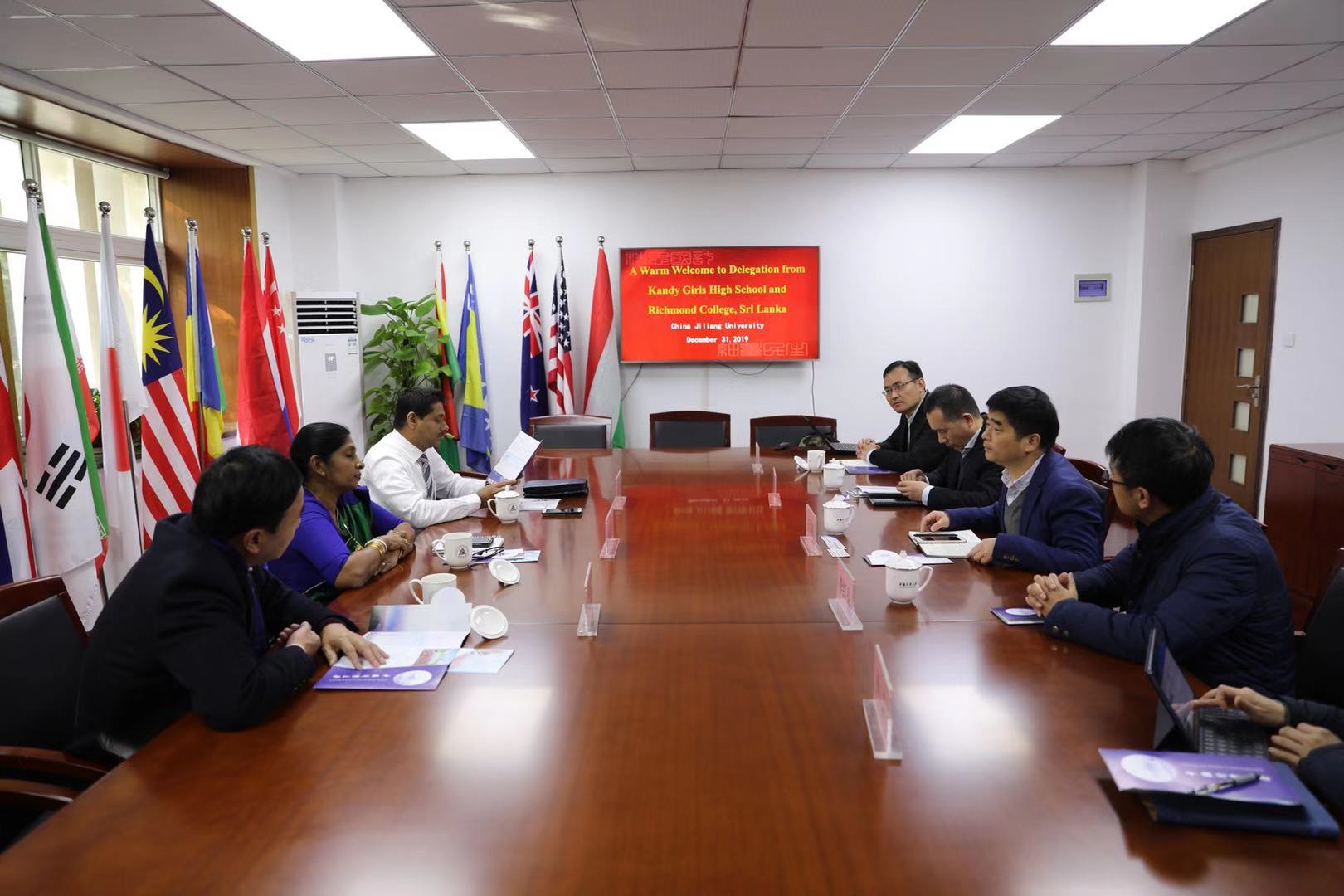 12月31日,斯里蘭卡加勒市里士滿學院(Richmond College, Galle)校長Sampath Weragoda、坎迪女子高中(Kandy Girls High School)校長Champika Karunadasa、斯里蘭卡浙江商會會長黃建軍一行3人訪問我校。宋明順校長親切會見了代表團一行。國際處、國際教育學院負責人及相關教師參加座談。