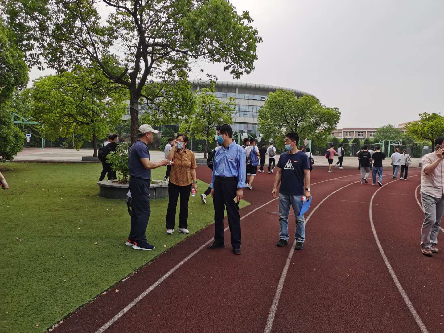 在師生返校復(fù)學(xué)的進(jìn)程中,學(xué)校領(lǐng)導(dǎo)高度重視學(xué)生的體育教學(xué)、課外體育鍛煉和運動場館的管理情況,多次到運動場親自參與指導(dǎo)體軍部相關(guān)工作,并提出了具體要求。學(xué)校在學(xué)生返校復(fù)學(xué)后對上課班級人數(shù)進(jìn)行了調(diào)整,為了滿足復(fù)學(xué)后體育教學(xué)的需要,體軍部對體育教學(xué)場地、時間、內(nèi)容進(jìn)行重新安排。一是將室內(nèi)項目安排到室外運動場地;二是錯時進(jìn)出體育場地,上課學(xué)生之間保持適宜距離;三是在場地上擺放了部分帳篷,入口處放置了飲水機(jī)、藿香正氣水、紙杯、免洗水液等物資供師生使用。