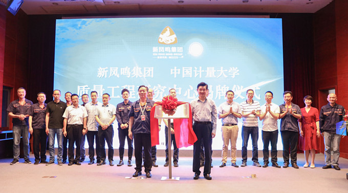 儀式上,校長宋明順與公司董事長莊奎龍在嘉興市、桐鄉市相關領導的見證下,共同為新鳳鳴、中國計量大學質量工程研究中心揭牌,經管學院院長樂為與公司副總裁許紀忠簽訂戰略合作協議。