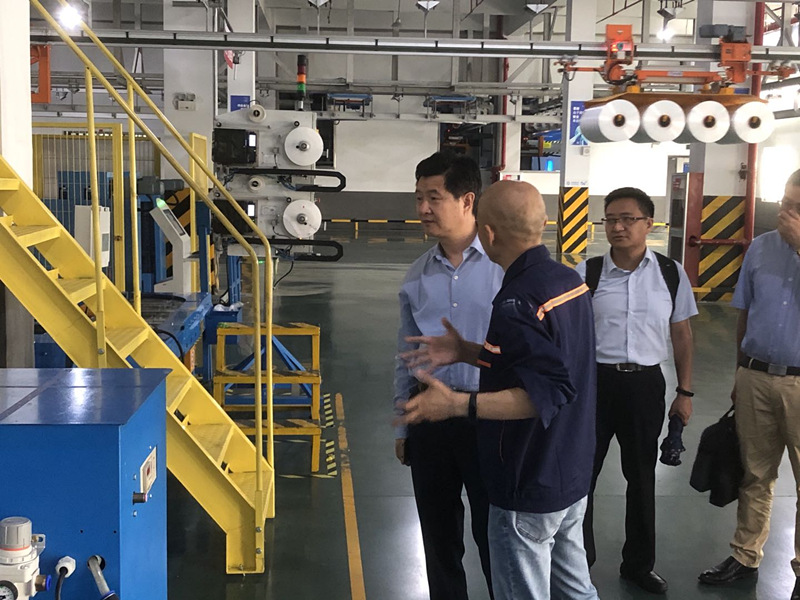 在儀式舉行之前,校長宋明順與公司董事長莊奎龍進行了座談,對新鳳鳴集團的發展把脈會診,提出了拓展國際市場、加強技術創新、產品轉型升級等具有針對性的建議。宋明順一行還參觀了智能落筒機車間,查看了公司質量管理流程。