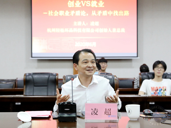 儀式結(jié)束后,凌超先生為學(xué)生作了題為《就業(yè)VS創(chuàng)業(yè)——社會職業(yè)矛盾論,從矛盾中找出路》的就業(yè)創(chuàng)業(yè)指導(dǎo)講座。