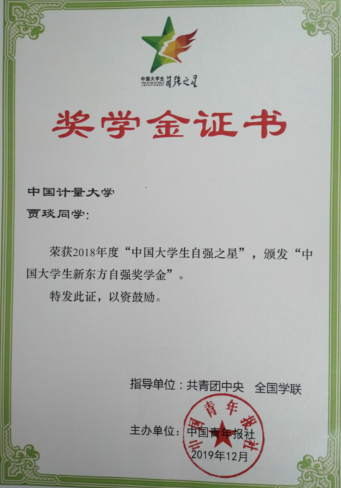 近日,我校16生醫(yī)1班賈琰同學(xué)獲評“中國大學(xué)生自強(qiáng)之星”,并獲頒發(fā)中國大學(xué)生新東方自強(qiáng)獎學(xué)金。