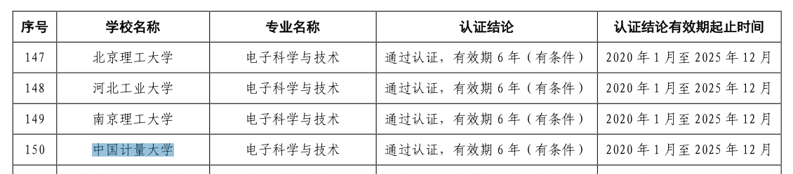 電子科學(xué)與技術(shù)專業(yè)分別于2013年、2017年通過首次認(rèn)證及認(rèn)證復(fù)查,此次是通過第3次認(rèn)證,有效期6年。