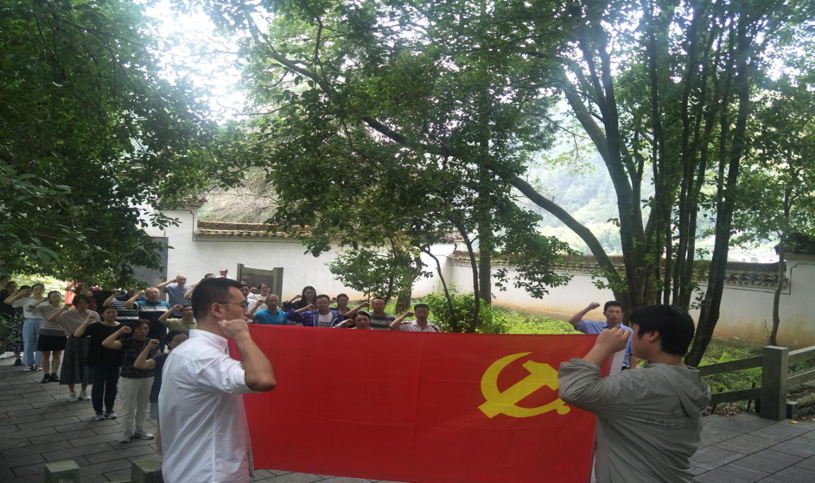全體黨員教師在粟裕將軍紀(jì)念碑前重溫入黨誓詞