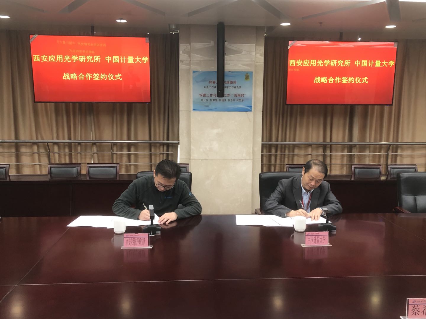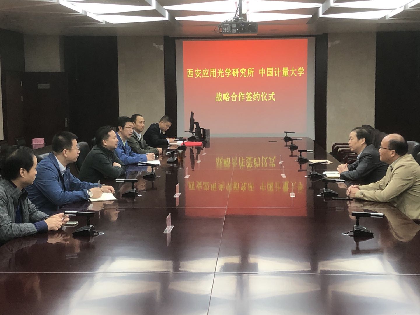 10月20日上午,中國計量大學與西安應用光學研究所戰略合作協議簽約儀式在西安舉行。副校長金尚忠與西安應用光學研究所副所長陳方斌出席儀式并代表雙方簽約。西安應用光學研究所相關部門負責人,學校人事處、對外聯絡處負責人參加了簽約儀式。