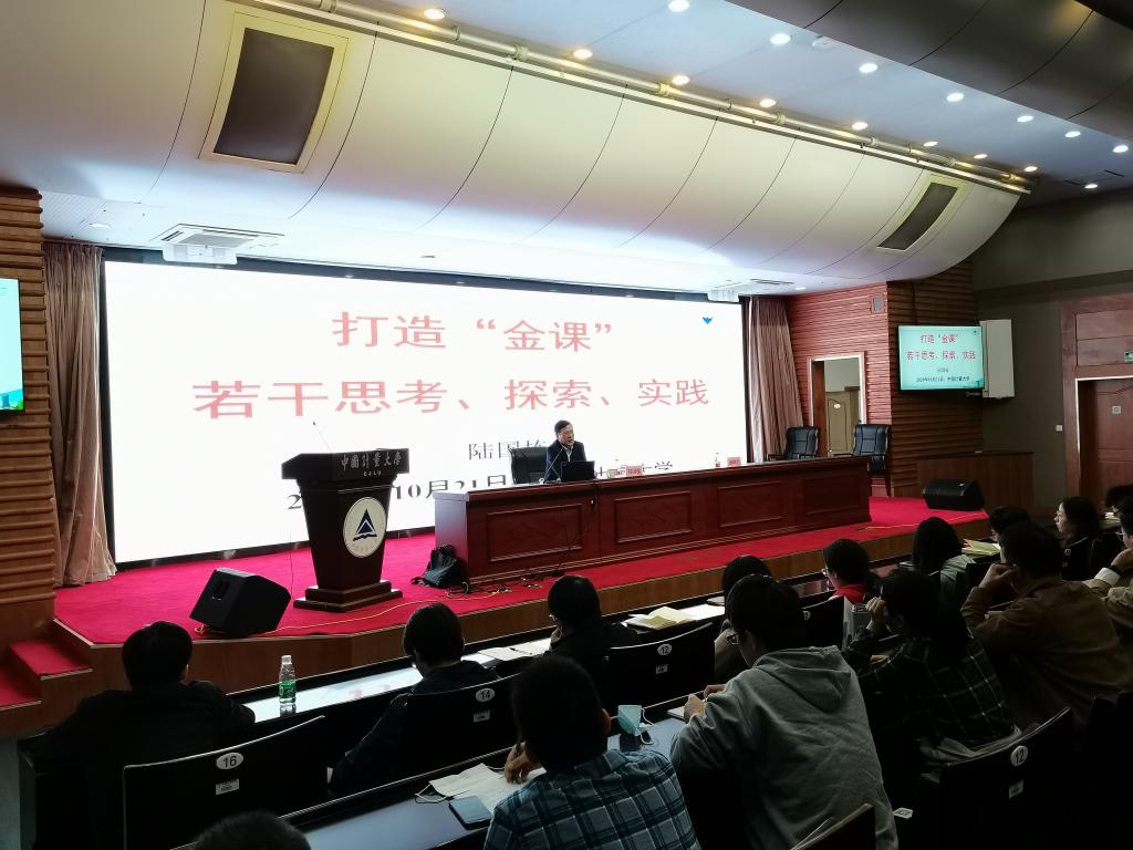 報告會上,陸國棟教授為我們深入剖析了“水課”與“金課”基本特征,提出“金課”建設基本路徑。同時,他針對專業、課程、教材相關內容,分享了他在考試方法改革、作業方法改革、教師教學競賽、教學成果獎申報等方面的探索成果。俞曉平副校長對陸國棟教授的精彩報告表示感謝,并號召廣大教師在此2021省教學成果獎培育啟動和國家級一流專業、一流課程建設熱點時期群策群力,不斷提升學校的課程建設質量,打造中量大金專、金課品牌,提高人才培養質量。