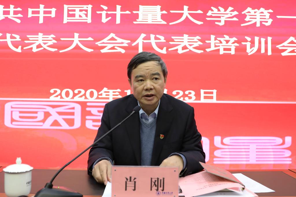 肖剛代表學校黨委作培訓講話。首先,他對大家當選為黨代表表示熱烈的祝賀。接著,他就黨代表如何提高政治站位、認真履行職責談三點意見。第一,要深入學習貫徹黨的十九屆五中全會精神,切實把思想和行動統一到全會精神上來,準確把握全會對教育事業發展作出的重大部署,爭做深入學習貫徹全會精神的表率。第二,要全面準確把握學校第一次黨代會召開的重要意義,深刻領會召開黨代會是全面加強黨的領導、有力推進黨的建設的根本要求,是抓住戰略機遇期、加快推進學校高質量發展的迫切需要,是進一步加強黨內民主建設、團結凝聚全校師生員工艱苦奮斗的重要手段。第三,要認真履行代表職責,正確行使代表權利。全體黨代表要自覺提高政治站位,樹牢“四個意識”,堅定“四個自信”,堅決做到“兩個維護”,從事關學校事業發展全局的高度,以飽滿的熱情、公正的態度參加會議,確保大會各項任務圓滿完成。