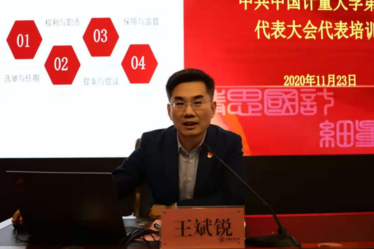 會上,王斌銳從選舉與任期、權利與職責、提案與提議、保障與監督四個方面詳細解讀了《中國共產黨中國計量大學代表大會代表任期制實施辦法》。與會黨代表現場簽訂了嚴守換屆紀律《承諾書》,向全校師生作出鄭重承諾。