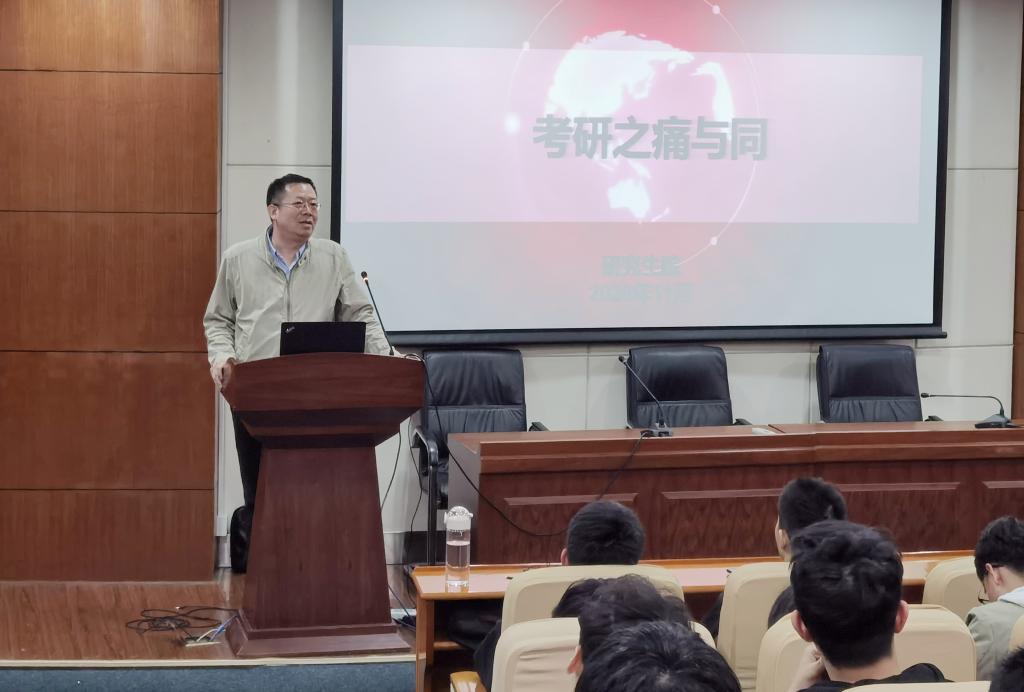 “同學們的考研動機是什么?”、“大家是否了解國際國內疫情大背景下的考研形勢?”、“擴招是否意味著研究生貶值?”,帶著多個啟發式的問題,張勇開始了題為“考研之痛與同”的講座。他從考研人應知應會、考研政策與擇校、我校研究生教育三個方面展開,結合大數據分析、實際案例等介紹了當下考研形勢趨勢,指導同學們要科學擇校、合理定位、及早規劃,鼓勵大家要把個人的發展同祖國復興的戰略需要相結合,鞭策同學們為了實現奮斗目標要有披星戴月、風雨兼程的決心勇氣。