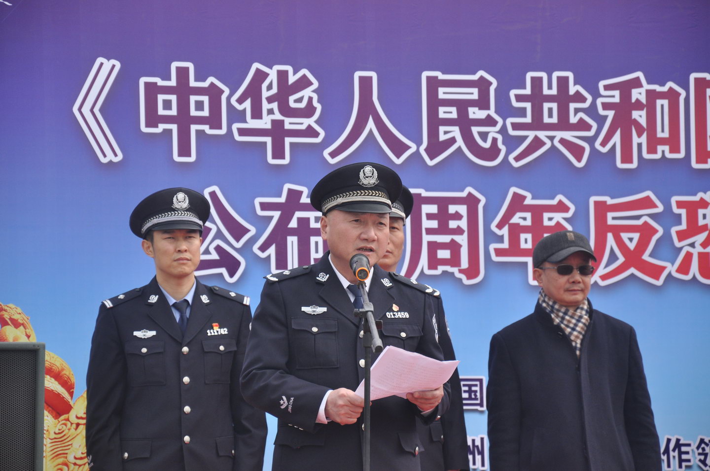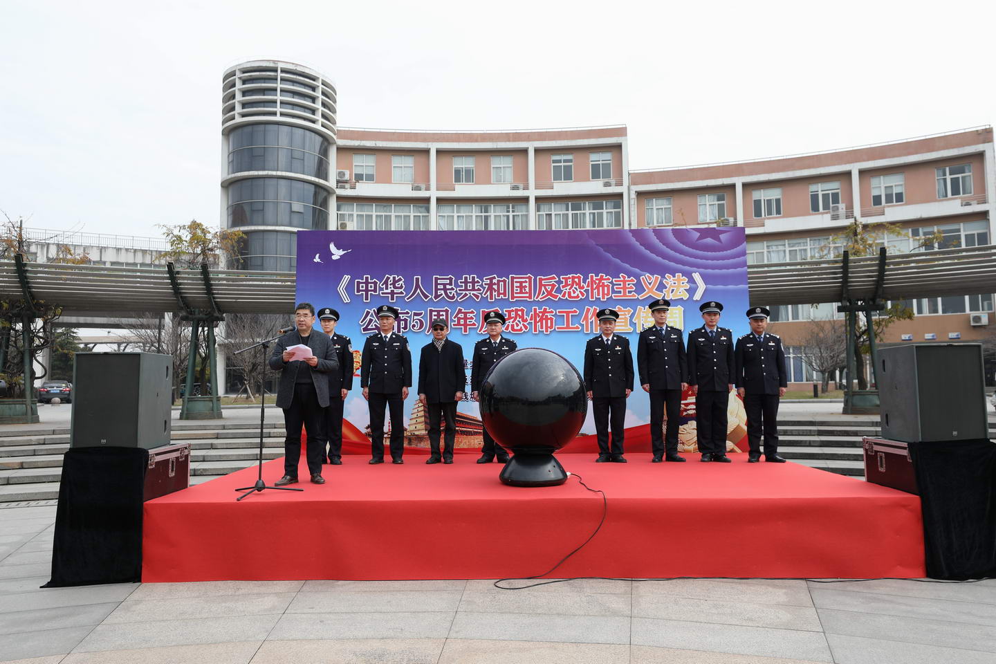 12月23日中午,由杭州市反恐工作領導小組辦公室主辦,中國計量大學協辦的《中華人民共和國反恐怖主義法》公布5周年“反恐怖工作宣傳周”活動啟動儀式在我校啟明活動廣場舉行。中國計量大學副校長葛洪良,杭州市反恐怖領導小組辦公室副主任黃文達,錢塘新區公安分局副局長蔣曉敏,杭州市公安局反恐怖支隊副支隊長黃輝等領導出席了活動啟動儀式。我校師生、浙江水利水電學院學生代表等近300人參加了活動。