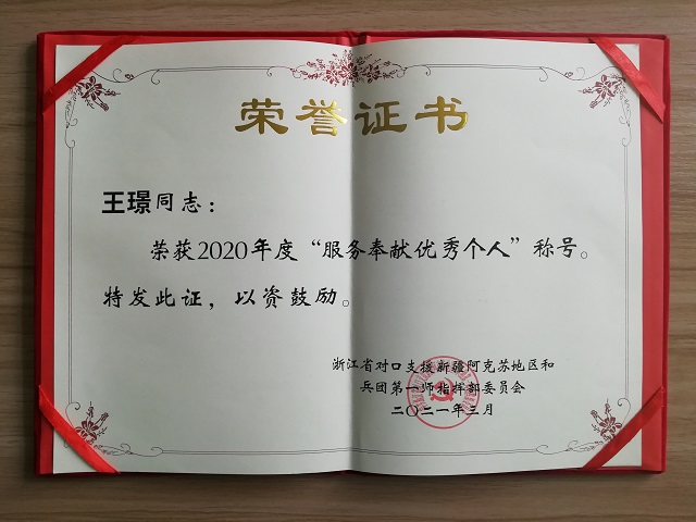 王璟同志經學校選派,自2018年3月參加援疆工作以來,服從紀律、聽從指揮,克服各種困難,工作認真負責、勤勤懇懇,為我省援疆工作做出了貢獻。目前,該同志根據浙江省教育廳的統一部署,仍在新疆理工學院繼續從事援疆工作。
