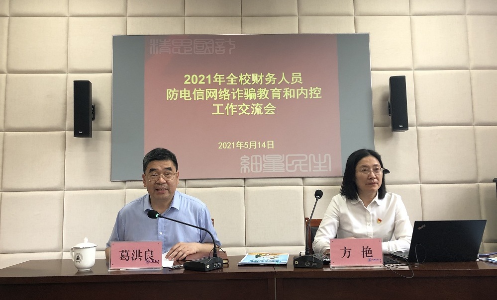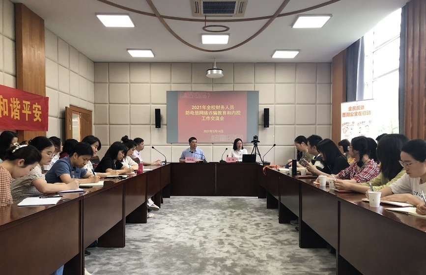 為提高財務(wù)人員的風(fēng)險防范意識,5月14日上午,在聞廳204會議室,學(xué)校組織召開了“2021年全校財務(wù)人員防電子網(wǎng)絡(luò)詐騙教育和內(nèi)控工作交流會”,副校長葛洪良,工行杭州高新支行副行長季文一行、計財處處長陳國旗和副處長郭慧麗及全校財務(wù)人員參加了會議,會議由葛洪良主持。