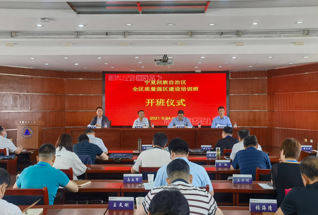 為深入貫徹落實(shí)習(xí)近平總書記視察寧夏重要講話精神和中央、自治區(qū)關(guān)于質(zhì)量工作的部署,進(jìn)一步增強(qiáng)各級(jí)政府及有關(guān)部門負(fù)責(zé)人“質(zhì)量第一,效益優(yōu)先 ”的高質(zhì)量發(fā)展意識(shí),提高質(zhì)量工作領(lǐng)導(dǎo)水平,加快推進(jìn)質(zhì)量強(qiáng)區(qū)建設(shè),“寧夏回族自治區(qū)全區(qū)質(zhì)量強(qiáng)區(qū)建設(shè)培訓(xùn)班”于5月25日在我校開班。寧夏回族自治區(qū)市場(chǎng)監(jiān)管廳一級(jí)巡視員胡鑫德,我校黨委委員、副校長(zhǎng)葛洪良,自治區(qū)市場(chǎng)監(jiān)管廳質(zhì)量發(fā)展處處長(zhǎng)路潤(rùn)虎出席開班儀式并講話。儀式由繼續(xù)教育學(xué)院院長(zhǎng)黃海清主持。