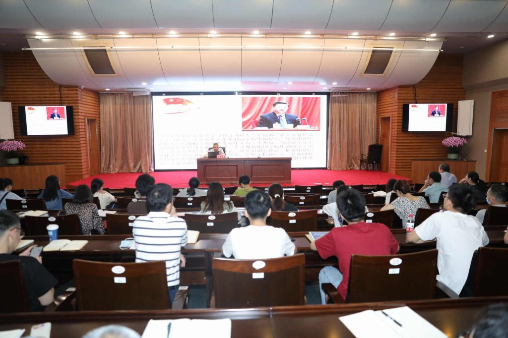 為進(jìn)一步推動黨史學(xué)習(xí)教育走深走實(shí),6月2日上午,機(jī)關(guān)黨委邀請中共浙江省委黨史和文獻(xiàn)研究室副主任、一級巡視員王祖強(qiáng)教授來校,在聞廳二樓報(bào)告廳作黨史學(xué)習(xí)教育專題報(bào)告。報(bào)告會由校黨委副書記肖剛主持。機(jī)關(guān)全體黨員和馬克思主義學(xué)院師生代表參加報(bào)告會。