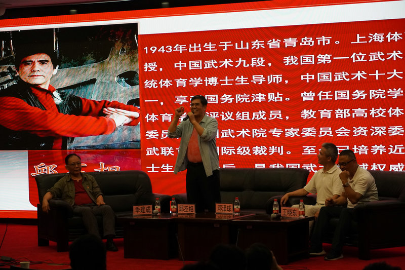 我國武術屆泰斗、中國第一位武術與民族傳統體育學博士生導師、上海體育學院武術學院邱丕相教授表示,““生活的太極拳,文化的太極拳,科學的太極拳”令我印象深刻,你們堅持創新探索十幾年,非常不容易”“你們在比賽時誦讀的那四句話“學練太極拳,體悟優秀傳統文化,做自信的中國人,過有品質的健康生活”,是你們的創新,也是你們的文化。”“不管是下午的太極拳大會還是晚上的校園太極拳文化論壇,形式都非常好,貼近學生,有的人可能從此受益終生?!薄爸袊嬃看髮W是學校領域開展太極拳的一面旗幟?!?/p>