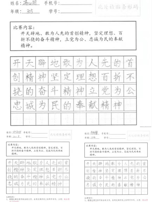 開天辟地、敢為人先的首創精神,堅定理想、百折不撓的奮斗精神,立黨為公、忠誠為民的奉獻精神,紅船精神內涵豐富、寓意深遠。學生們端坐在書桌前,聚精會神地書寫紅船精神內涵,一橫一豎、一撇一奈,伴著筆尖劃過的沙沙聲,一個個端正、娟秀的漢字呈現在專用書寫紙上。