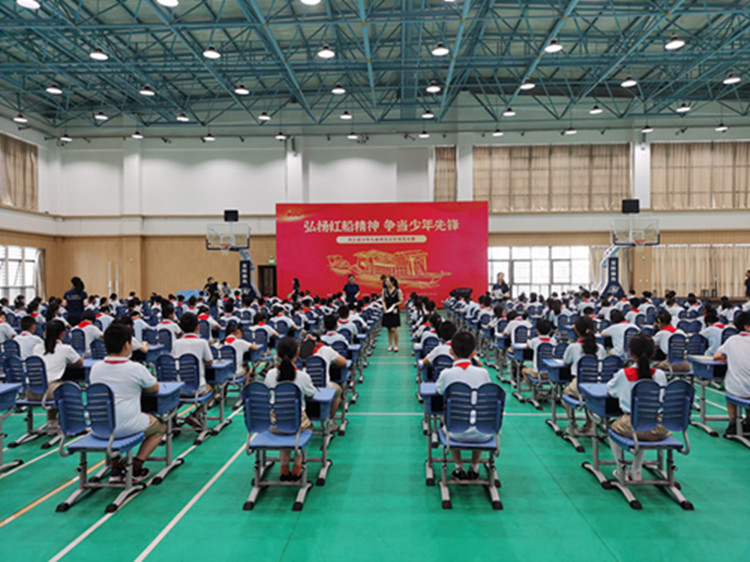 在啟動儀式上,同濟大學嘉興實驗學校的同學還深情朗誦了由胡建成創作的散文詩《紅船啟航》。
