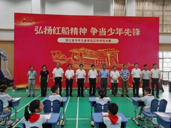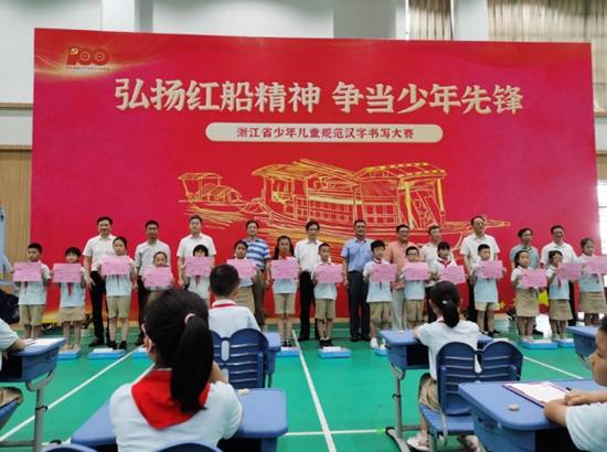 6月11日上午,由中國計量大學關心下一代工作委員會作為承辦單位之一,西泠印社、中共嘉興市委宣傳部指導,浙江省教育書法協會主辦的浙江省少年兒童規范漢字書寫大賽啟動儀式在嘉興市同濟大學附屬嘉興實驗學校舉行。該校二至四年級208位學生,通過現場書寫規范漢字的方式,學習紅船精神的內涵,爭做紅船精神的繼承人。