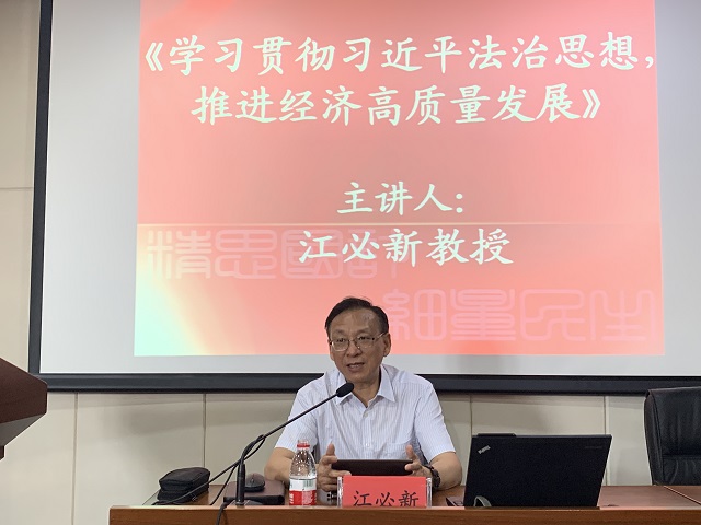 6月23日上午,我校法學(xué)院邀請(qǐng)全國(guó)人大憲法和法律委員會(huì)副主任、中國(guó)法學(xué)會(huì)副會(huì)長(zhǎng)、原最高人民法院常務(wù)副院長(zhǎng)江必新教授來(lái)校作“學(xué)習(xí)貫徹習(xí)近平法治思想,推進(jìn)經(jīng)濟(jì)高質(zhì)量發(fā)展”主題講座。本次講座由陳永強(qiáng)教授主持,法學(xué)院師生共同參與此次講座。