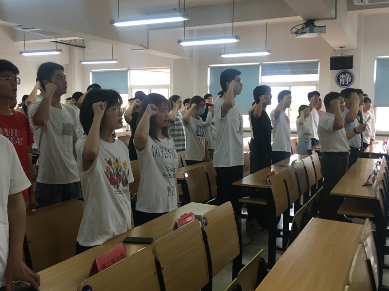 “我志愿加入中國共產(chǎn)黨,擁護黨的綱領(lǐng)……”計測學(xué)院黨委組織學(xué)院新發(fā)展預(yù)備黨員在環(huán)宇樓C201舉行集中入黨宣誓活動。現(xiàn)場,學(xué)院黨委書記劉紅波帶領(lǐng)新發(fā)展黨員面對鮮紅的黨旗,鄭重地舉起右手莊嚴(yán)宣誓,表達(dá)了為共產(chǎn)主義事業(yè)奮斗終身的決心。宣誓儀式后,與會老師為新黨員佩戴黨徽,新黨員為學(xué)院黨員之家“一元錢基金”募捐,在力所能及的范圍內(nèi)為學(xué)院資助基金添磚加瓦。