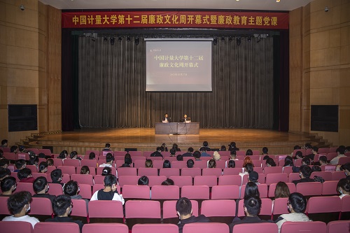 10月27日晚,廉政教育主題黨課正式拉開了中國計量大學第十二屆“廉政文化周”的序幕。校黨委委員、紀委書記、監察專員章建生為第十二屆“廉政文化周”開幕式致開幕辭,900余名預備黨員參加了開幕式。組織部副部長、統戰部副部長朱明輝主持大會。