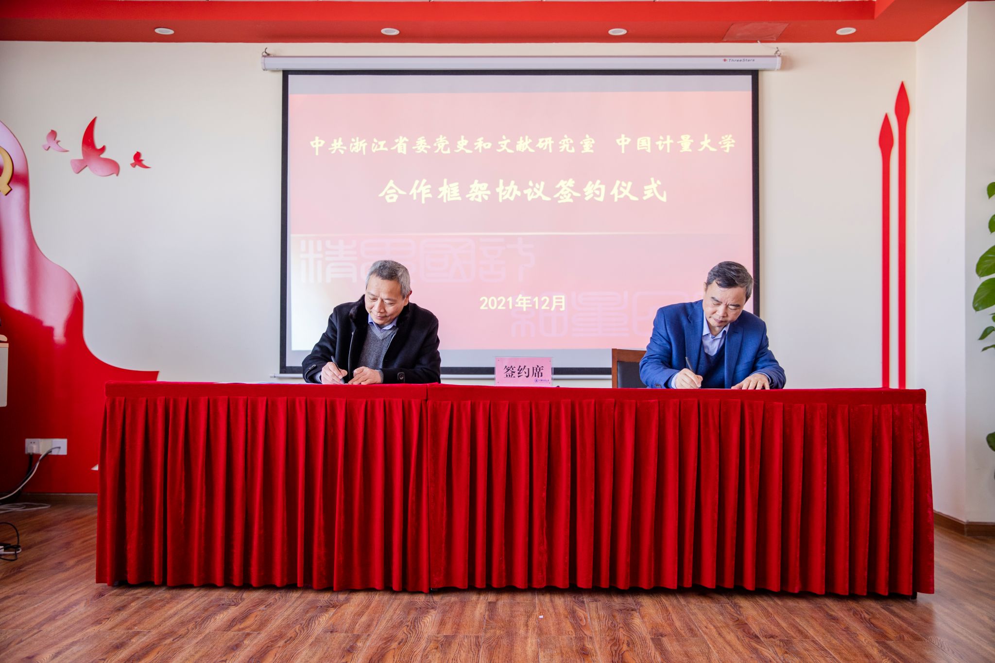 12月23日,我校與中共浙江省委黨史和文獻研究室合作簽約儀式在馬克思主義中國化研究與傳播中心舉行,中共浙江省委黨史和文獻研究室副主任、一級巡視員王祖強,我校黨委副書記肖剛代表雙方簽約。