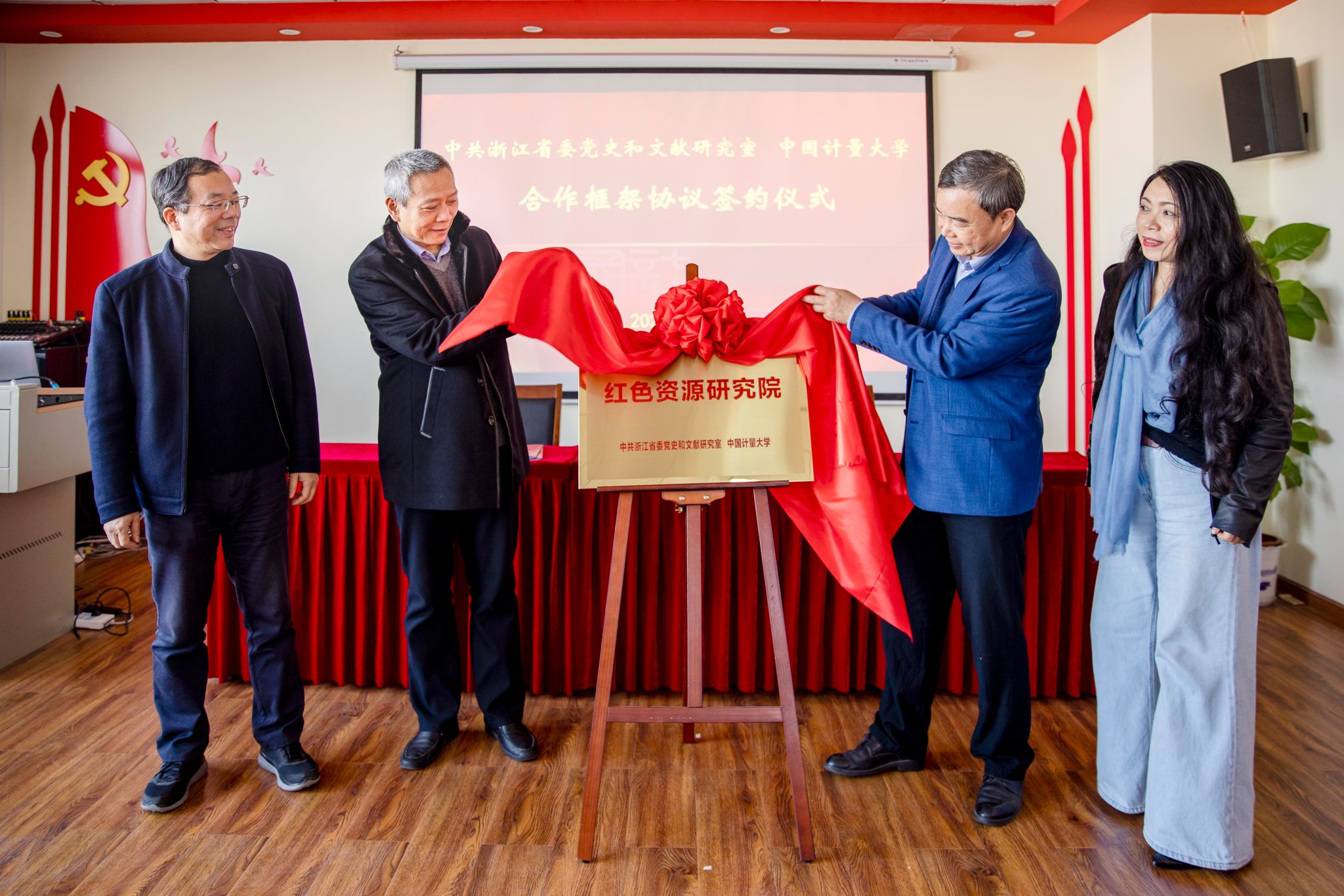 會上進行了“紅色資源研究院”揭牌儀式。研究院由中共浙江省委黨史和文獻研究室和我校共建,共同開展紅色資源的研究、開發(fā)、利用、保護、教育、傳播等工作。