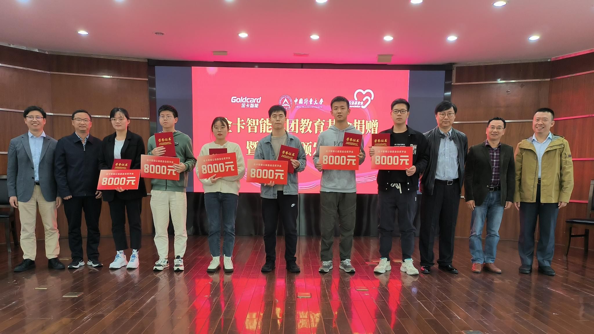 會上,金卡智能公益基金會向我校捐贈90萬元用于支持學生成長發展。孔明宣讀了金卡智能獎學金的獲得者名單,他鼓勵獲獎同學再接再厲、再創佳績,參會領導共同為獲獎學生頒發證書。