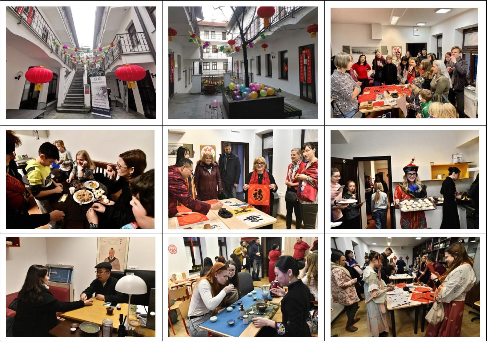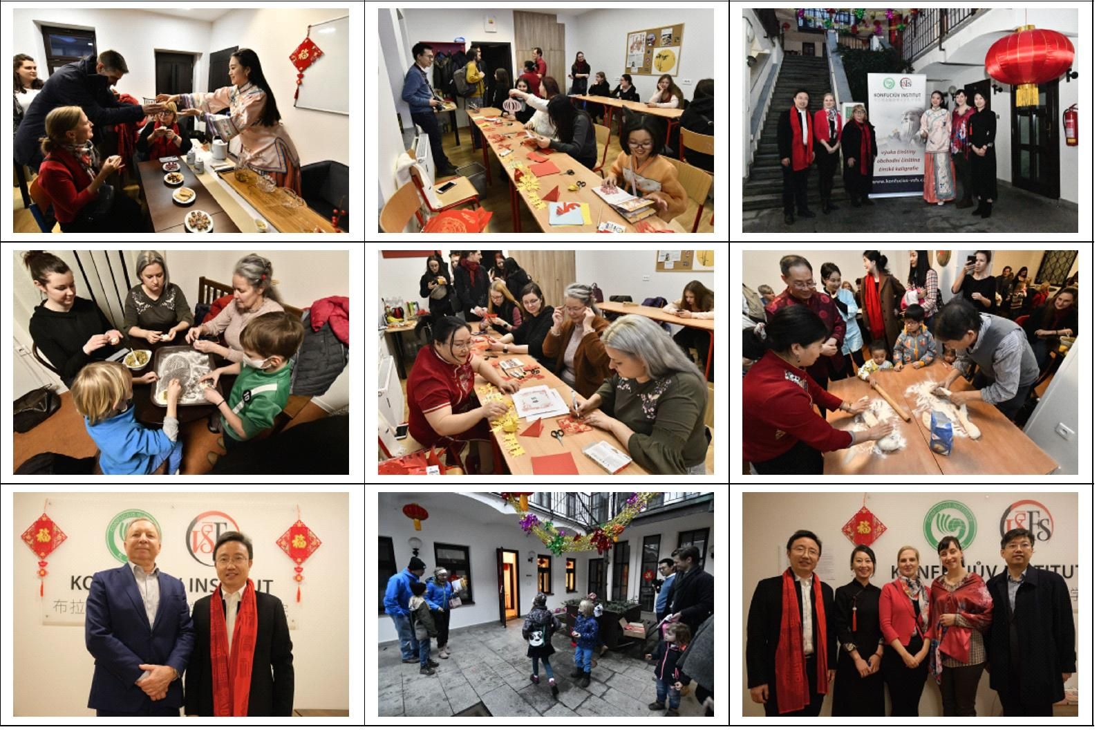 2023年1月6日,我校與捷克布拉格金融管理大學共建的孔子學院張燈結彩,喜氣洋洋,校園掛起大紅燈籠,走廊拉起各色彩帶,窗戶貼滿“福”字,教室和辦公室門口張貼對聯,吸引了來自捷克各地的百余人參加2023歡樂春節游園活動,布拉格金融管理大學校長Bohuslava ?enky?ová、副校長Petr Budinsky、國際處處長Lucie Finová等領導親臨現場參加慶祝活動。中國銀行布拉格分行副行長祁云、中國工商銀行布拉格分行秘書長王力、捷克中國和平統一促進會副會長兼秘書長李克非等嘉賓也蒞臨孔子學院,共迎中國“兔年”的到來。