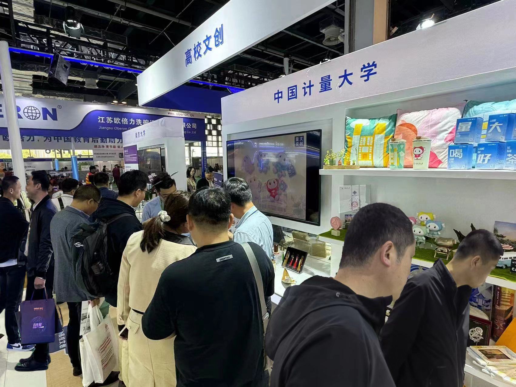 4月1日,第七屆中國教育后勤展覽會在上海世博展覽館開幕。我校資產公司經浙江省商專會推薦,作為浙江省唯一高校代表,與復旦大學、同濟大學、天津大學、南京大學、華中科技大學、西北工業大學、山東大學等院校一同組成“高校文創C8聯盟”,共同展出高校自主研發、各具特色的文創產品。開幕式后,中國教育后勤協會會長劉建平、中國教育后勤協會商貿管理專業委員會主任張志勇、副校長王迪釗等領導來到中國計量大學展位指導工作,學校職能部門領導也到展區參與互動交流。